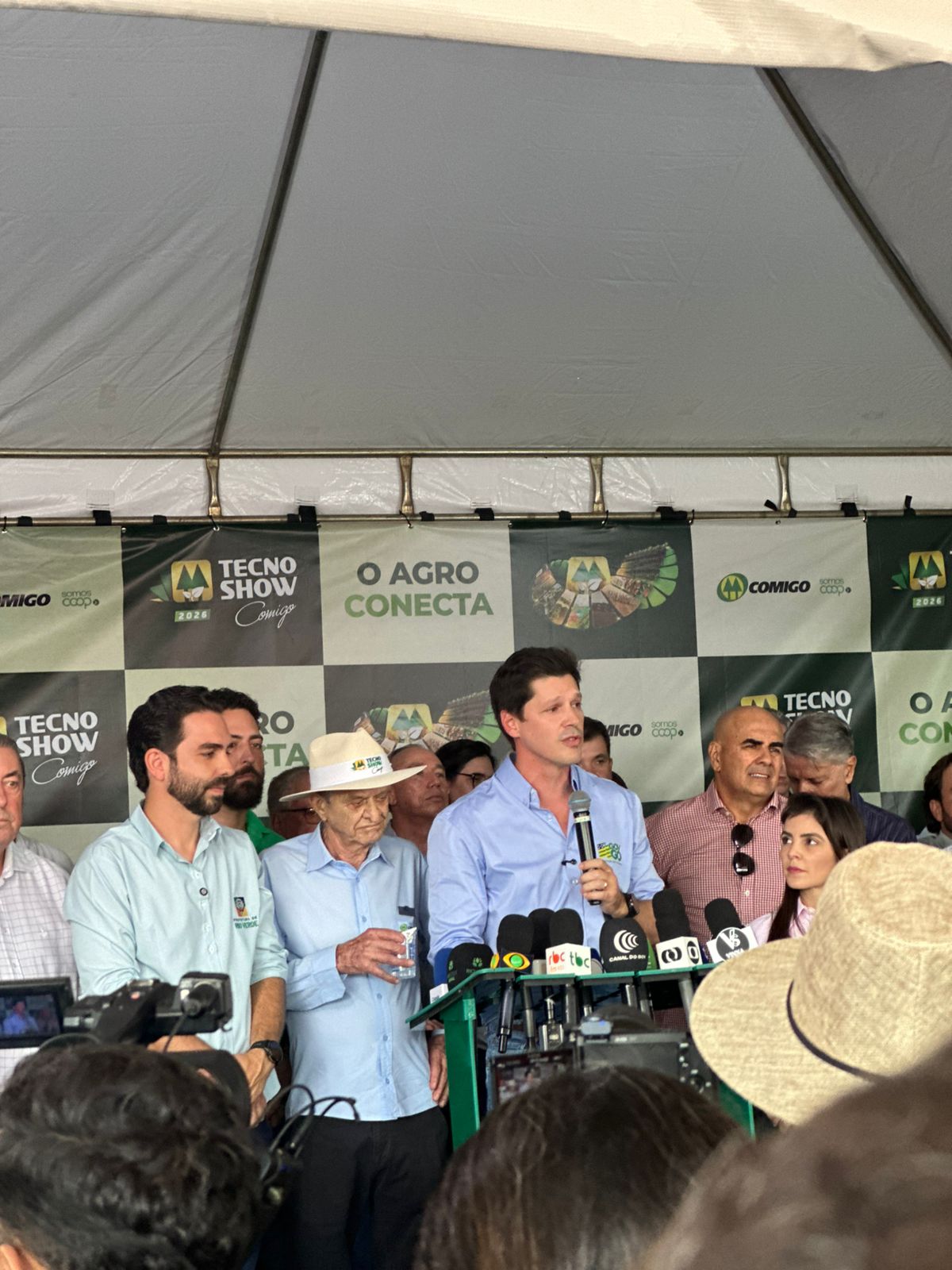 Ao lado dele, o presidente da Comigo, Antônio Chavaglia, pontuou que a feira vai além das cifras: "A Tecnoshow é sobre evolução. O compromisso da nossa cooperativa é trazer o que há de mais moderno para o pequeno e o grande produtor, garantindo segurança jurídica e tecnologia de ponta no campo."