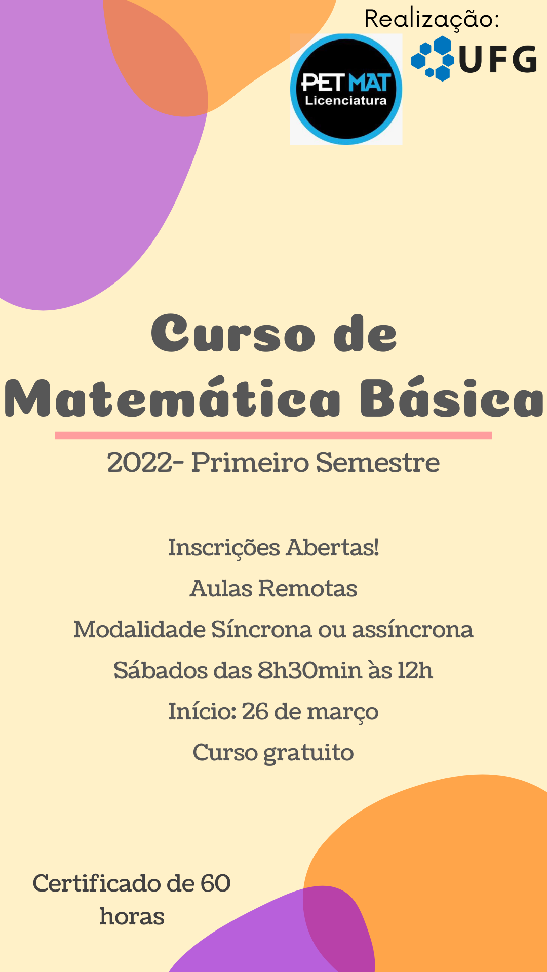 As aulas começam no dia 26 de março, terminam no dia 18 de junho e serão transmitidas ás 8h30, pelo Google Meet. O curso é um projeto de extensão dos alunos do curso de matemática da instituição.